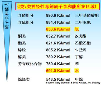 神经性毒剂质子亲和性标度中的位置