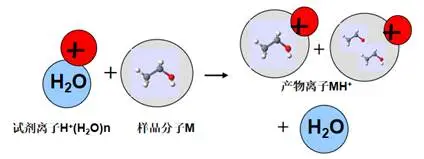 反应离子(如H3O+)作为质子供体其质子亲和力(PA)需低于目标样品分子(M)的PA。当反应离子与样品分子碰撞时,若PAM>PAH3O+,质子自发转移,生成样品正离子(MH+)。